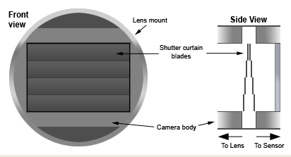 Il principio è semplice: due tendine scorrono davanti al piano focale, creando una fessura che si muove a velocità costante. A tempi rapidi, il sensore (o la pellicola) non è mai completamente esposto: la luce attraversa una fessura che percorre il fotogramma. Questo introduce limiti: la sincronizzazione con il flash è vincolata a tempi relativamente lenti (1/200–1/250 s), perché il lampo deve illuminare il fotogramma quando è interamente scoperto. Inoltre, la meccanica è soggetta a usura: molle, ingranaggi e tendine richiedono manutenzione, e il ciclo di vita è finito.